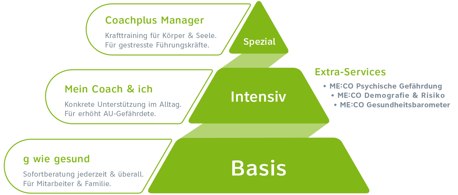 Wir können Medizin. Ob Hotline, Intensiv-Coaching, Risikoanalyse oder Psychische Gefährdungsbeurteilung – was immer Sie als Unternehmen oder Institution für Ihr BGM buchen: Hohe Beratungsqualität, zertifizierter Datenschutz und Inklusivleistungen wie Dokumentation, Reports oder Evaluation sind bei uns Standard. Gerne unterstützt ME:CO Sie übrigens auch bei der Kommunikation neuer Gesundheitsangebote. Und wenn Sie mögen, flankieren wir auch Ihre anderen BGM-Maßnahmen. Hauptsache, Ihre Mitarbeiter profitieren davon.